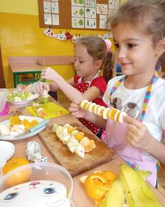 W ramach realizacji "programu dla szkół" w klasie pierwszej odbyły się zajęcia kulinarne "Owocowy zawrót głowy", których celem jest promocja zdrowego odżywiania. Uczniowie na zajęciach przygotowały owocowe specjały, które potem wspólnie zjadły.