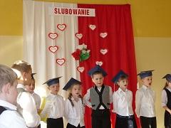 Dzień 28 pażdziernika był wyjątkowy w naszej szkole. Uczniowie pierwszej klasy przystąpili do uroczystego ślubowania. PO krótkim "egzaminie" w obecności całej społeczności szkolnej (uczniowie, nauczyciele, rodzice) dzieci klasy pierwszej złożyły uroczyste ślubowanie. Tekst ślubowania Ślubuję...