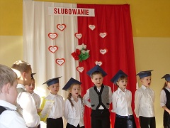 Dzień 28 pażdziernika był wyjątkowy w naszej szkole. Uczniowie pierwszej klasy przystąpili do uroczystego ślubowania.  PO krótkim "egzaminie" w obecności całej społeczności szkolnej (uczniowie, nauczyciele, rodzice) dzieci klasy pierwszej złożyły uroczyste ślubowanie.