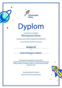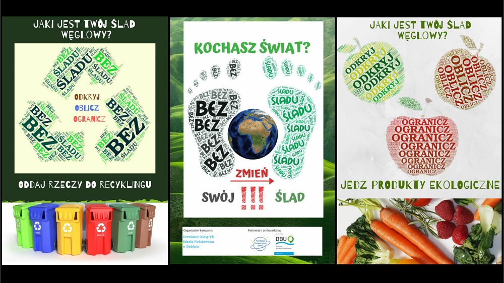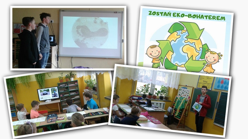 Przez ostatnich kilka miesięcy klasa VII przygotowała kampanię społeczną "Bez śladu" dotyczącą problemu śladu węglowego. Działania te prowadzone były w ramach programu "Klimatyczna klasa" Fundacji Uniwersytet Dzieci.Klasa VII przeprowadziła zbiórkę nakrętek i makulatury na rzecz schroniska dla zwierząt, zbiórkę baterii oraz konkurs "zostań Eko-bohaterem" dla klas I-III. Podjęte przez klasę działania były na bieżąco dokumentowane na specjalnie założonym w tym celu fanpage'u