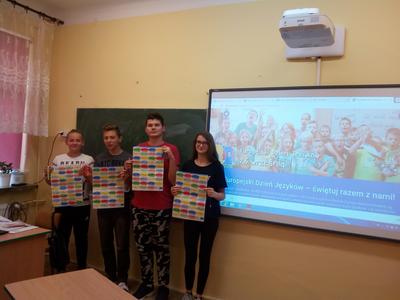 Z tej okazji uczniowie klas starszych wzięli udział w projekcie e-Twinning "EDOL postcard exchange project in local proverbs". Projekt miał na celu zwrócenie uwagi na podobieństwo języków europejskich w kontekście popularnych przysłów. Przygotowane przez naszych uczniów widokówki z przysłowiami znalazły się na zorganizowanych z okazji Europejskiego Dnia Języków szkolnych wystawach prac m.in. w Rumunii, Hiszpanii, Grecji, Chorwacji czy Słowacji. Podobna wystawa została zorganizowana również w naszej szkole, a pamiątką z projektu jest "Księga europejskich przysłów".