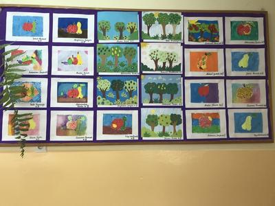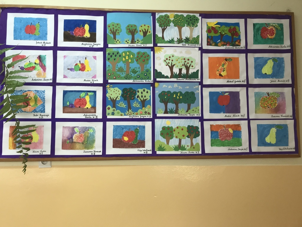 Na korytarzu szkolnym można podziwiać prace plastyczne uczniów klasy II i III.