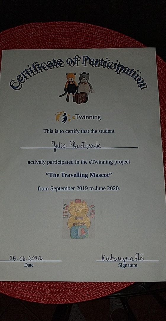 W bieżącym roku szkolnym klasa V uczestniczyła w projekcie eTwinning „The travelling mascot”. Celem projektu było rozwinięcie umiejętności posługiwania się językiem angielskim oraz kompetencji informatycznych, a także zdobycie wiedzy o innych krajach.