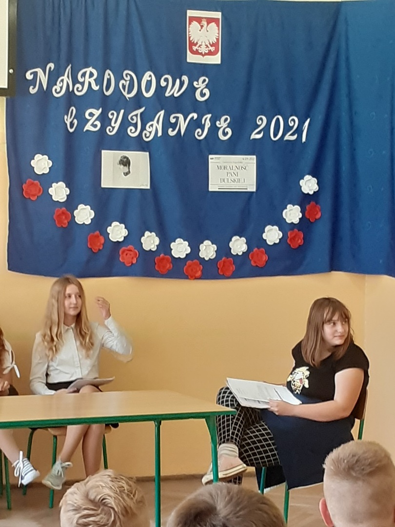 Dnia 6 września 2021 r. uczniowie naszej szkoły wzięli udział w akcji Narodowe Czytanie 2021. Podczas tegorocznej, dziesiątej, a więc jubileuszowej odsłony Narodowego Czytania spotkaliśmy się, aby wspólnie czytać utwór Gabrieli Zapolskiej „Moralność Pani Dulskiej”. Komedia, pełna gorzkiej ironii, piętnuje obłudę i zakłamanie. Pojęcie „dulszczyzna”, mające swoje źródło w dramacie G. Zapolskiej, weszło na trwałe do języka polskiego.