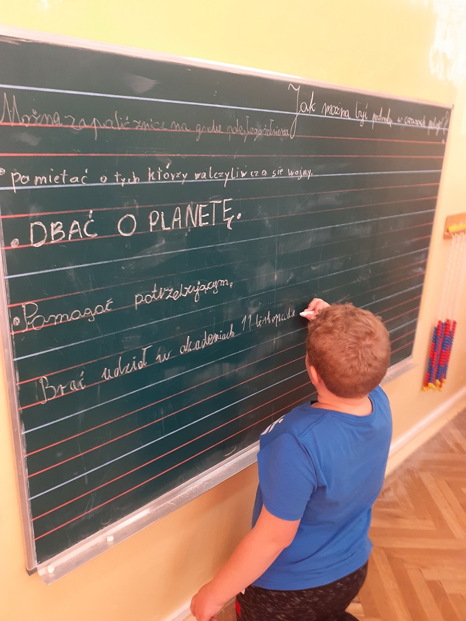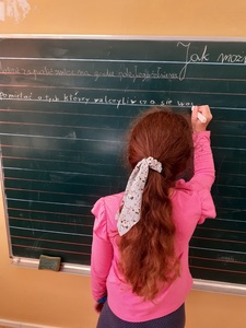 Wnioski zostały zapisane przez trzecioklasistów na tablicy szkolnej, następnie zilustrowane w postaci plakatów.