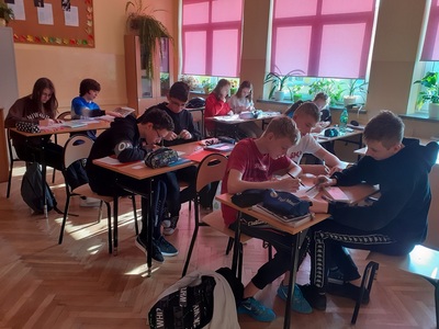 II. W klasie V i VI uczniowie wysłuchali dwóch części słuchowiska zatytułowanego "Mały" roznosiciel nadziei. Po zapoznaniu się ze słuchowiskiem układali w kolejności chronologicznej wydarzenia z życia głównego bohatera, Stasia, dwunastoletniego uczestnika Powstania Warszawskiego. Nazywali emocje, które towarzyszyły mu w każdym z wydarzeń, w których brał udział. Słuchowisko wprowadziło uczniów w powstańczy klimat, odpowiedziało na pytanie, jaką rolę w powstaniu pełnił tytułowy „roznosiciel nadziei”, pomogło uczniom zrozumieć, czym wówczas kierowała się młodzież i w jakich warunkach musiała się odnaleźć, by przetrwać. Pokazało relacje międzyludzkie, solidarność i współpracę w czasie, gdy na szali stawiano własną rodzinę kontra miłość do Warszawy, do Polski. III. W klasie 8 zajęcia rozpoczęły się od obejrzenia odcinka programu Co za historia poświęconego Powstaniu Warszawskiemu.