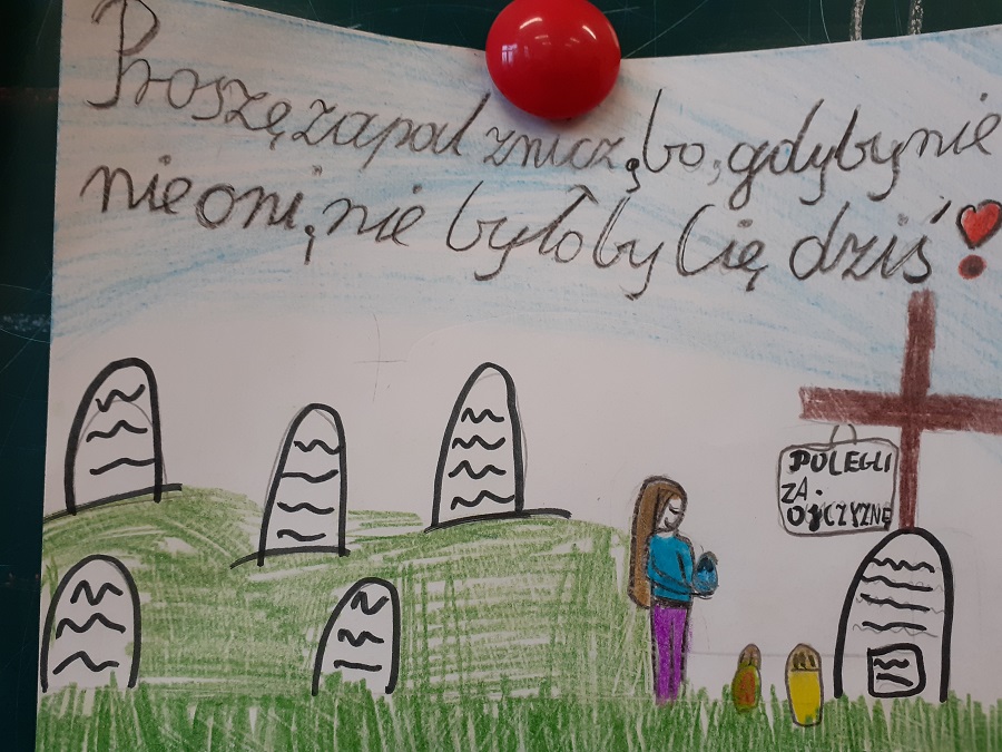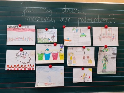 I. W klasie III przeprowadzone zostały zajęcia w oparciu o spektakl Niebajka o Powstaniu Warszawskim . Po obejrzeniu materiału uczniowie wskazali różnice i podobieństwa w sytuacji dziadka (kiedy był młody) i wnuczki - bohaterów teatrzyku. Razem z nauczycielem tworzyli ustnie definicje następujących pojęć: wojna, powstanie, pokój, patriota, bohater. Wyjaśnili, na czym polegały bohaterstwo i patriotyzm w czasie wojny. Następnie podali przykłady sytuacji, które pokazują, że dzieci w ich wieku, w czasie pokoju, też mogą być patriotami, np. zapalając znicze na grobach poległych za Ojczyznę, biorąc udział w obchodach Narodowego Święta Niepodległości, ucząc się historii, znając słowa hymnu, pomagając potrzebującym i samotnym, starszym ludziom, pamiętając o walczących za naszą wolność, okazując wdzięczność stojącym na straży naszego bezpieczeństwa, dbając o środowisko naturalne.