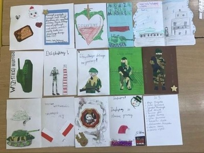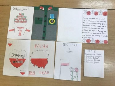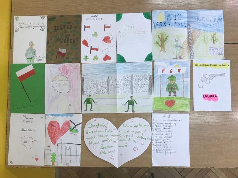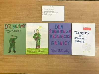 Uczniowie naszej szkoły wzięli udział w akcji „Kartka wsparcia i wdzięczności z pozdrowieniami i wyrazami szacunku dla pełniących służbę na naszej wschodniej granicy żołnierzy Sił Zbrojnych RP oraz funkcjonariuszy Straży Granicznej i Policji.”