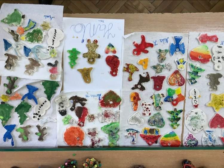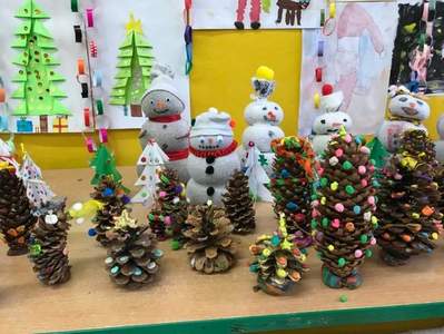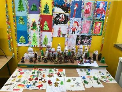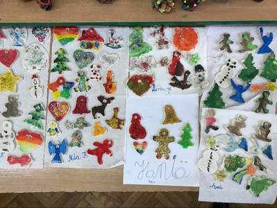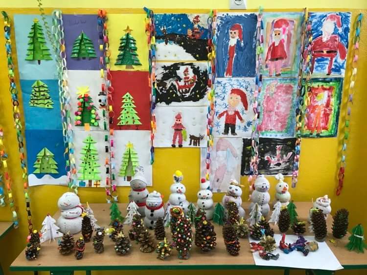 W klasie pierwszej już wystroiły się choinki i zebrała się bałwankowa rodzinka. Dzieci zrobiły wystawę swoich świątecznych ozdób.