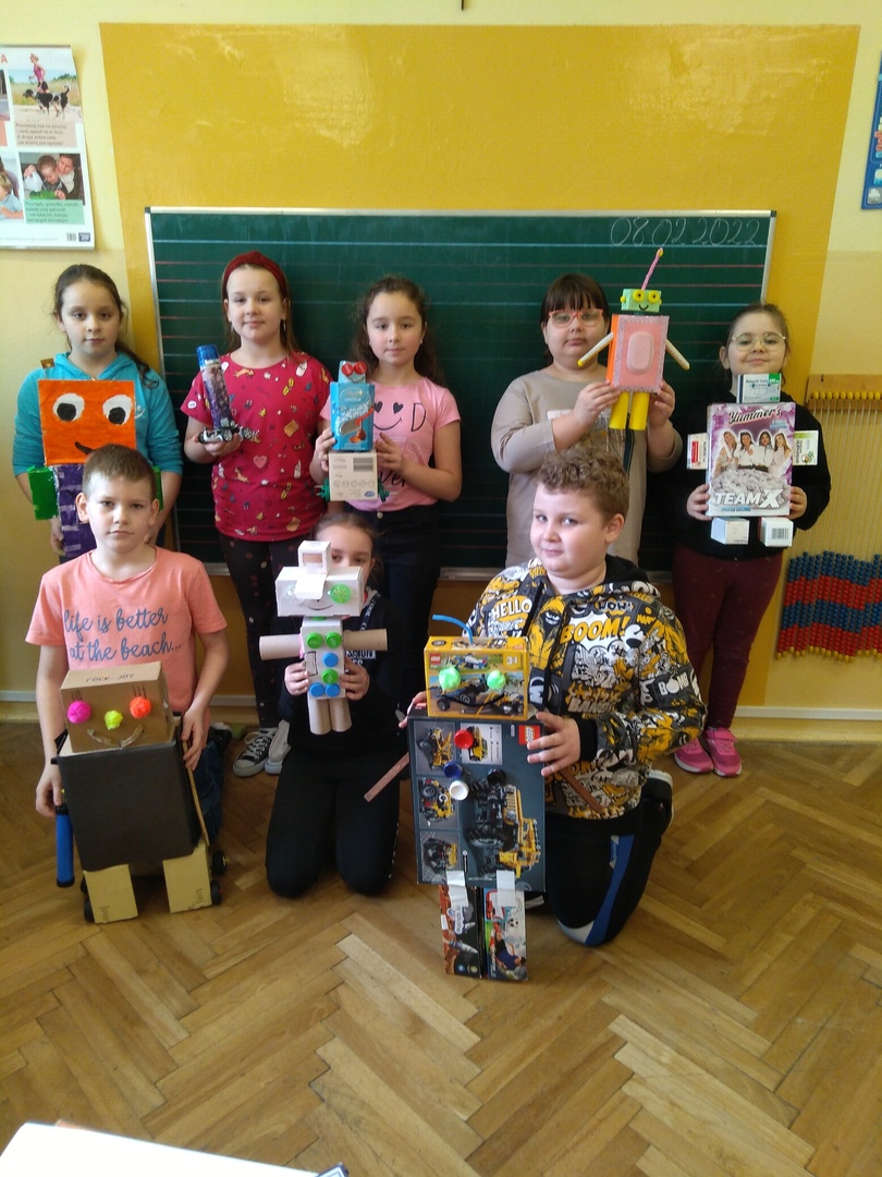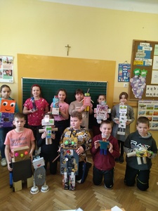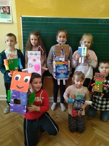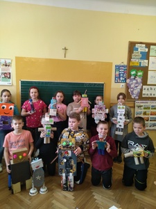 Uczniowie klasy II i III wykazali się wielką kreatywnością. Roboty wykonane z odpadów są niezwykle pomysłowe i solidnie wykonane .