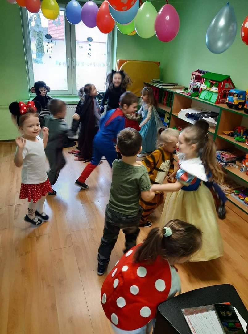 Dnia 8 lutego 2022 roku w naszej grupie odbyła się zabawa karnawałowa.Dzieci przebrane za różne postacie bawiły się przy znanych i lubianych utworach, brały udział w konkursachi zabawach