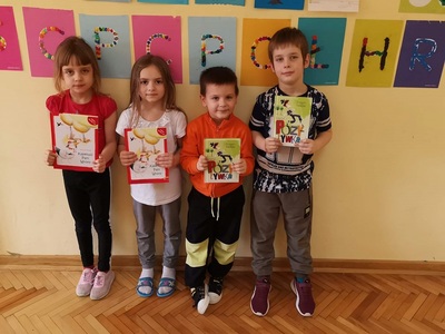 W ramach akcji promującej czytelnictwo w Oddziale Przedszkolnym zorganizowano konkursy plastyczne: "Moja ulubiona postać z baśni" i "Zakładka do książki". Uczestnicy konkursów otrzymali nagrody oraz pamiątkowe dyplomy.