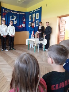 Powaga prezentowanych treści, muzyka i śpiew oraz piękna dekoracja sprawiły, że zarówno młodsi, jak i starsi uczniowie z uwagą wysłuchali akademii.