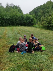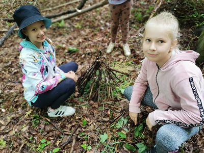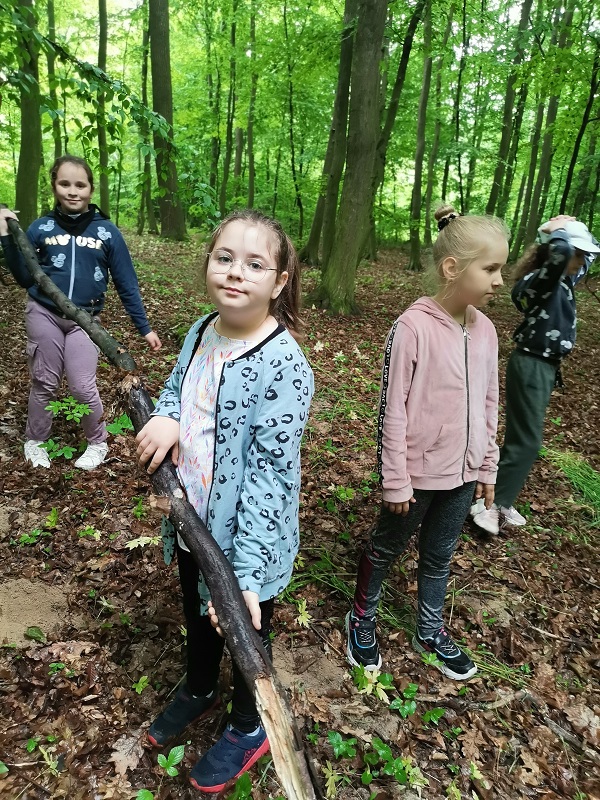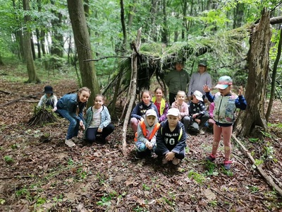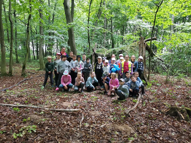Uczniowie klas: I, II, III, IV, V mimo porannej, niezbyt sprzyjającej aury spędzili ten dzień w terenie i świetnie się bawili- budowali szałas, bawili się w podchody, zorganizowali piknik na polanie.