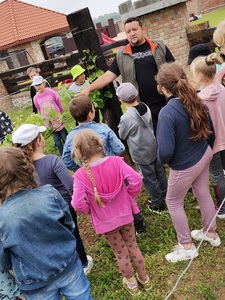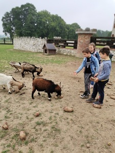 Dzięki uprzejmości Pana Pawła Sochy uczniowie mieli okazję odwiedzić plantację winorośli oraz nakarmić mieszkańców zagrody (kozy miniaturki, daniele oraz kucyka).