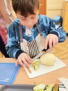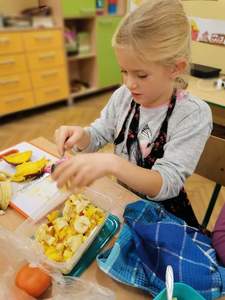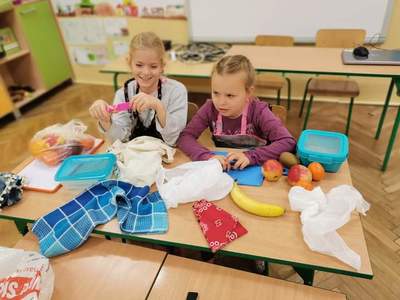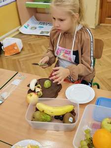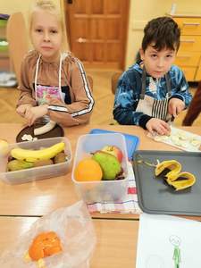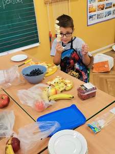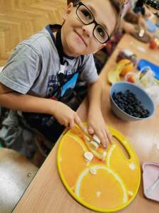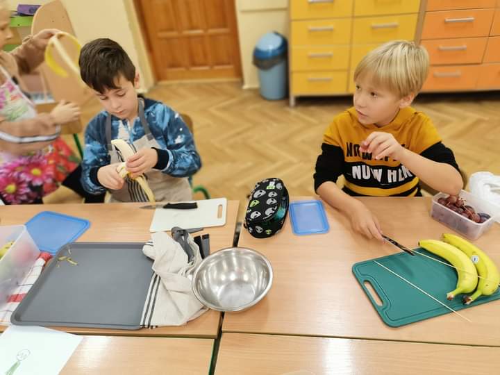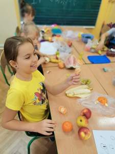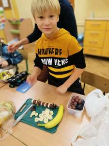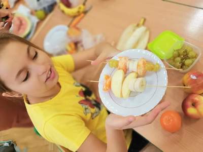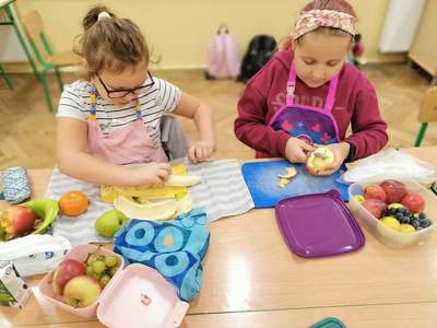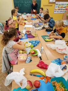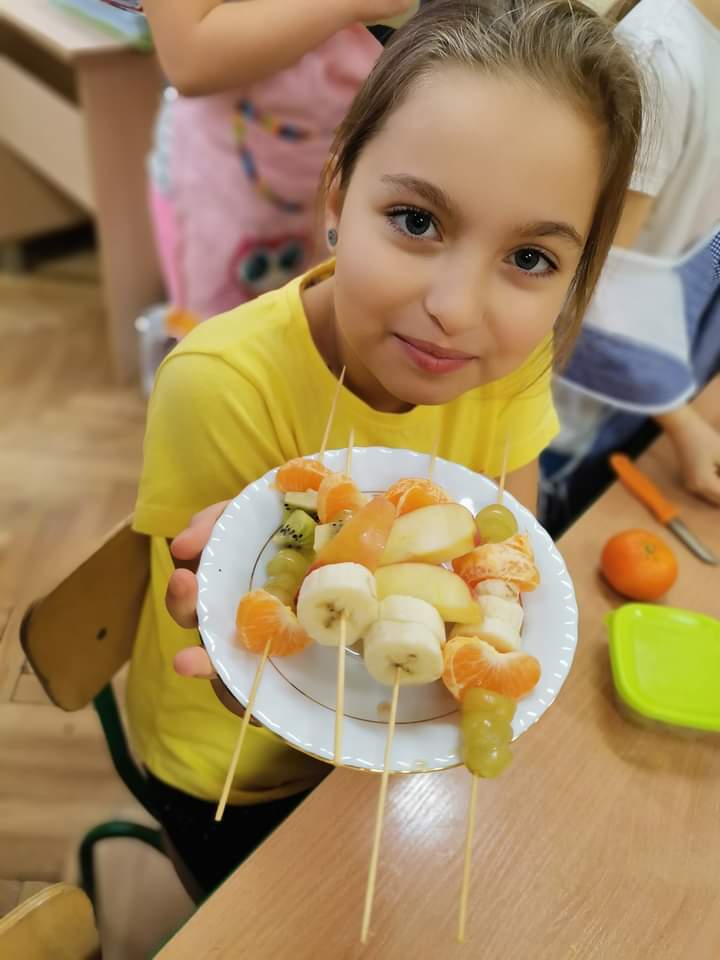 W ramach akcji "Program dla szkół" w miesiącu wrześniu odbyły się zajęcia kulinarne w klasach I-III pod hasłem "Owocowe inspiracje”. W trakcie zajęć dzieci wykonały pyszne, kolorowe sałatki owocowe oraz szaszłyki. Dzięki udziałowi w zajęciach dzieci dowiedziały się jak: