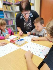 Uczniowie klasy pierwszej nie tylko świetnie bawili się podczas wykonywania kropkowych zadań, ale również zostali uwrażliwieni na to, aby zawsze wierzyć w siebie i rozwijać swoje talenty.