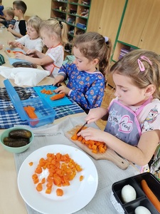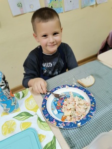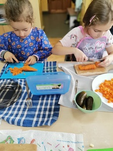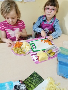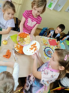 21 października obchodziliśmy Światowy Dzień Owoców i Warzyw. Z tej okazji w poniedziałek 24.10.2022 r. przedszkolaki samodzielnie wykonały sałatkę warzywną. Po skończonej pracy odbyła się degustacja.