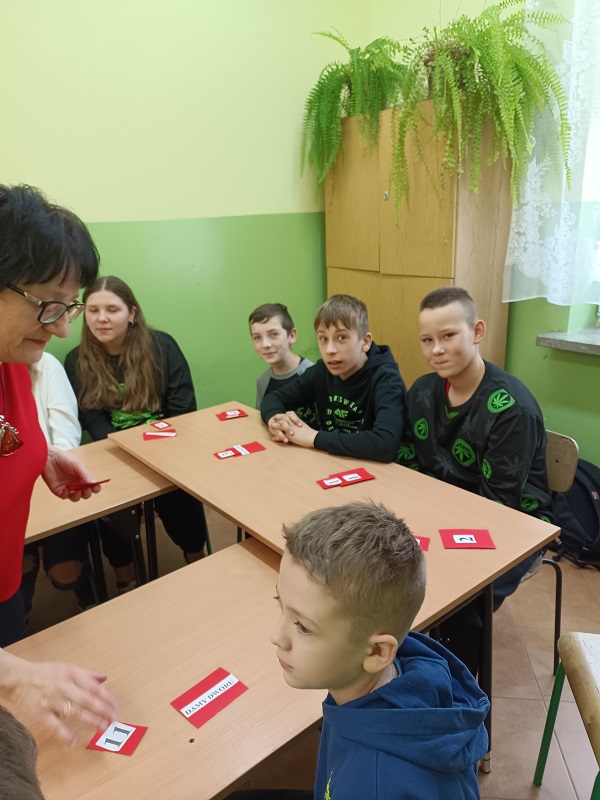 Na początku zajęć dzieci wylosowały karteczki z numerami miejsc, które miały zająć przy stole ustawionym w kształcie litery U. Okazało się, że każdy numer oznaczał miejsce przypisane w dawnych czasach konkretnej osobie: władcy, jego żonie, kanclerzowi, podskarbiemu, innym ważnym urzędnikom, damom dworu, mieszczaństwu, chłopom. Gdy uczniowie dowiedzieli, jak wyglądało usadzenie osób przy królewskim stole, rozpoczęli przypisywanie poszczególnym biesiadnikom karteczek z nazwami potraw, które spożywali. Niektóre z tych nazw brzmiały niekiedy nie tyle smakowicie, co zagadkowo. Nad rozwiązaniem kilku kulinarnych zagadek uczniowie nieźle się nagłowili. W tej części zajęć można było porównać jadłospis Polaków sprzed kilku wieków i współczesne menu.