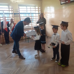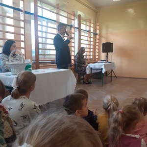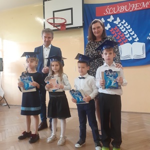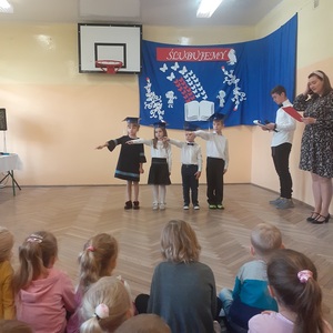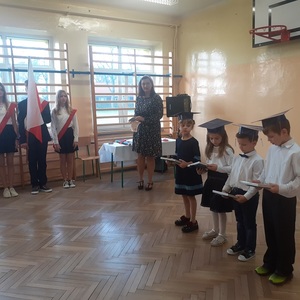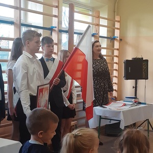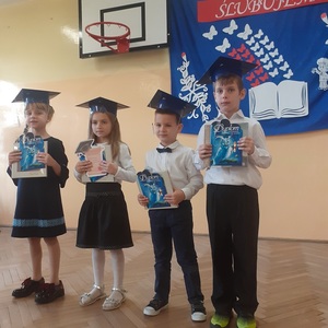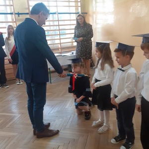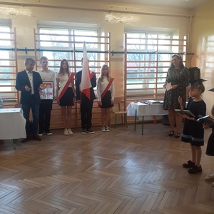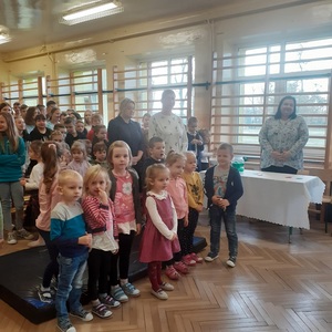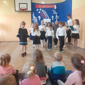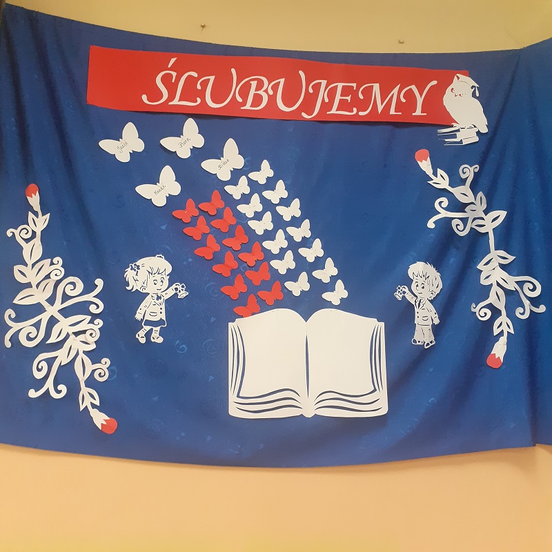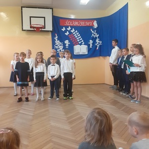 28 października w naszej szkole odbyło się uroczyste ślubowanie uczniów klasy pierwszej. Uroczystość rozpoczęła się częścią artystyczną- dzieci zaprezentowały swoje zdolności wokalne, taneczne oraz recytatorskie, a także wykazały się wiedzą na temat otaczającego świata. Następnie przed godłem i pocztem sztandarowym ślubowali, że będą kochali swoją ojczyznę i dbali o dobre imię klasy i szkoły. Ślubowali również, że zawsze będą wierzyli w siebie oraz swoje umiejętności, a także, że będą mieli otwarte serca na innych ludzi.