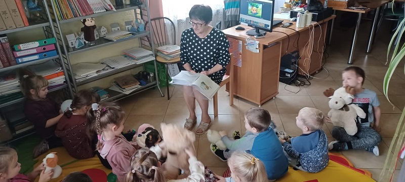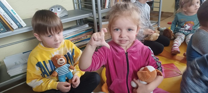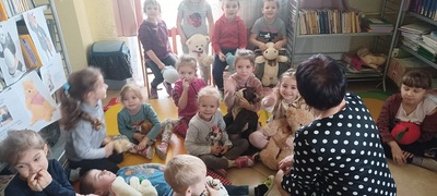 Jaki jest miś? Każdy widzi 🐻. 25 listopada obchodziliśmy dzień pluszowego misia. Z tej okazji przedszkolaki przyniosły swoje ulubione misie i wzięły udział w zajęciach przygotowanych przez panią Urszulę Tkaczyk w Bibliotece Publicznej w Dębinie. Były tańce, bajki, zagadki i oczywiście historia powstania tej ponadczasowej zabawki. Przedstawiamy fotorelację z tego wydarzenia.