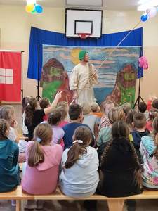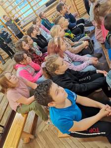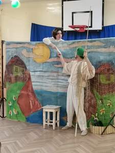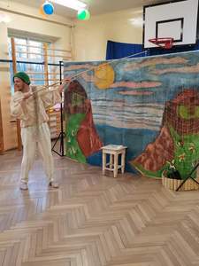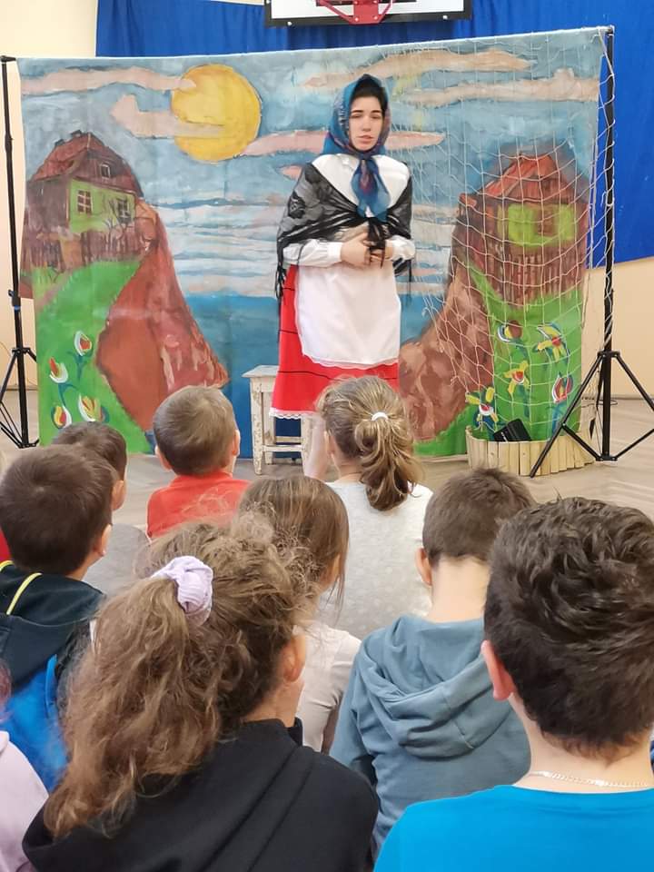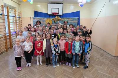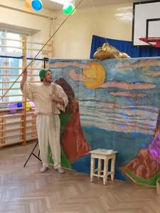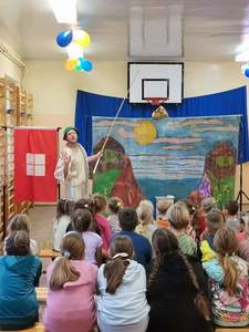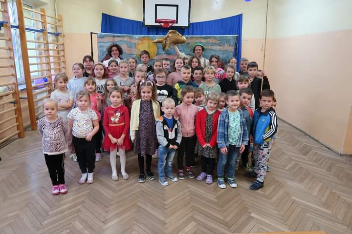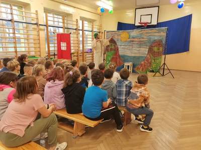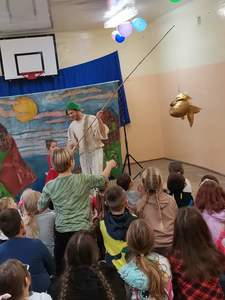 Uczniowie klas I - IV oraz dzieci z oddziału przedszkolnego obejrzeli przedstawienie teatralne pt. " Nie tylko o rybaku i złotej rybce"