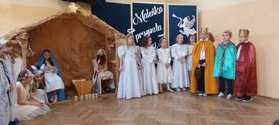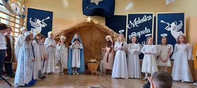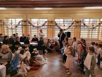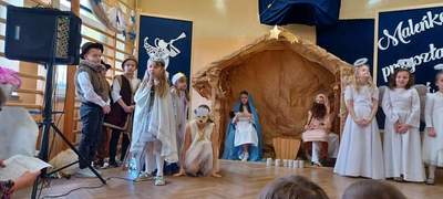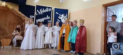 Akademia rozpoczęła się występem dzieci z oddziału przedszkolnego, który został przygotowany przez wychowawcę grupy panią Grażynę Trzcińską. Następnie zaprezentowali się uczniowie klas I-III w przedstawieniu jasełkowym pt. "Maleńka przyszła miłość", które przygotowane zostało przez wychowawczynie – panie Mieczysławę Zielonkę i Paulinę Szopę.