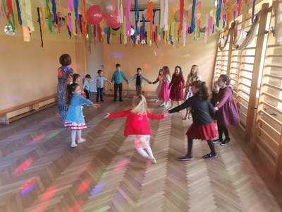 Przed feriami zimowymi uczniowie świetnie bawili się na zabawie choinkowej, którą zorganizowała Rada Rodziców.