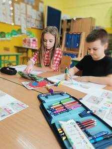 Uczniowie klasy I wzięli udział w zajęciach edukacyjnych mających na celu przybliżenie im informacji o pozytywnych i negatywnych aspektach korzystania z internetu. Zostały im przedstawione zasady jakimi należy się kierować, aby ich dane były bezpieczne w sieci. Mieli okazję zapoznać się z grami edukacyjnymi oferowanymi w ramach projektu sieciaki.pl. Na zakończenie dzieci wykonały plakaty pt. "Bezpieczny Internet".