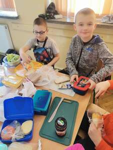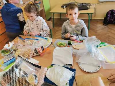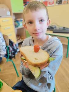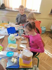 W ramach udziału w Programie dla szkoł uczniowie klas I-III przygotowali pyszne, kolorowe i przede wszystkim zdrowe kanapki. Dzieci z wielkim zaangażowaniem przygotowywały kanapki, kształtując prawidłowe nawyki żywieniowe. Wspólna praca dostarczyła im wiele radości.