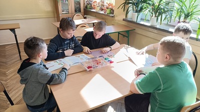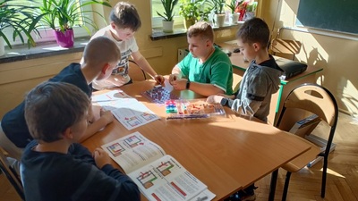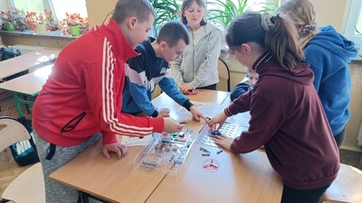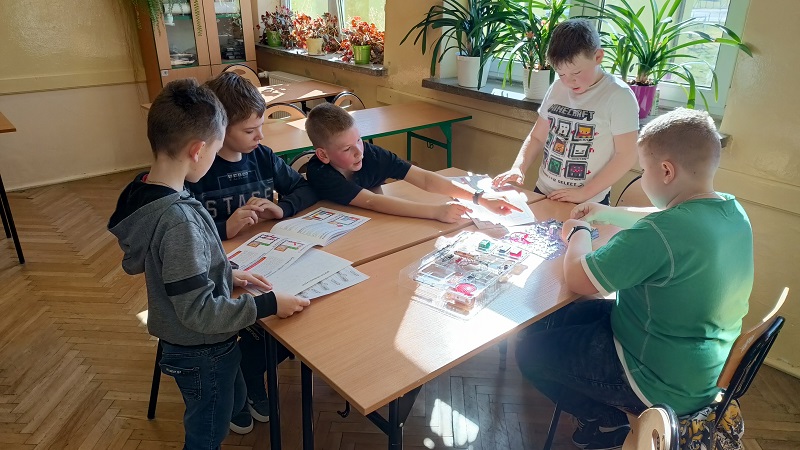Uczniowie klasy IV, V i VI na lekcjach techniki budowali układy elektryczne i elektroniczne korzystając z pomocy edukacyjnych pozyskanych w ramach projektu Laboratoria Przyszłości.