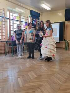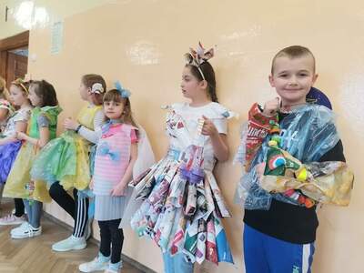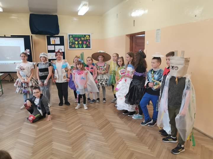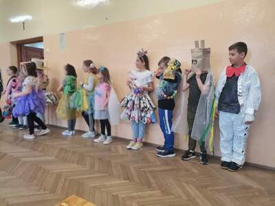 Barwnym elementem Dnia Wiosny był konkurs na strój przygotowany z wykorzystaniem materiałów przeznaczonych do recyklingu. Wzięli w nim udział uczniowie klas I-III. Prezentowane przez nich stroje były bardzo kreatywne i efektowne. Za udział w konkursach uczniowie otrzymali skromne upominki.