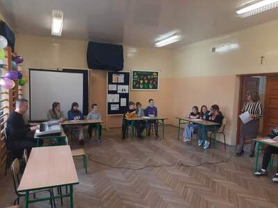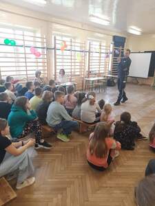 21 marca 2023 roku obchodziliśmy „Dzień Wiosny”. W tym dniu uczniowie naszej szkoły brali udział w konkursach i quizach związanych z tematyką profilaktyczną. Poruszaliśmy problematykę zawiązaną ze zdrowym stylem życia i aktywnym spędzaniem czasu wolnego. Uczyliśmy się, jak uzależnieniom powiedzieć „NIE”. W naszym spotkaniu brał udział Pan Dzielnicowy z Komendy Policji w Bychawie, który przeprowadził z uczniami pogadankę na temat skutków zażywania substancji uzależniających i bezpiecznych zachowań.