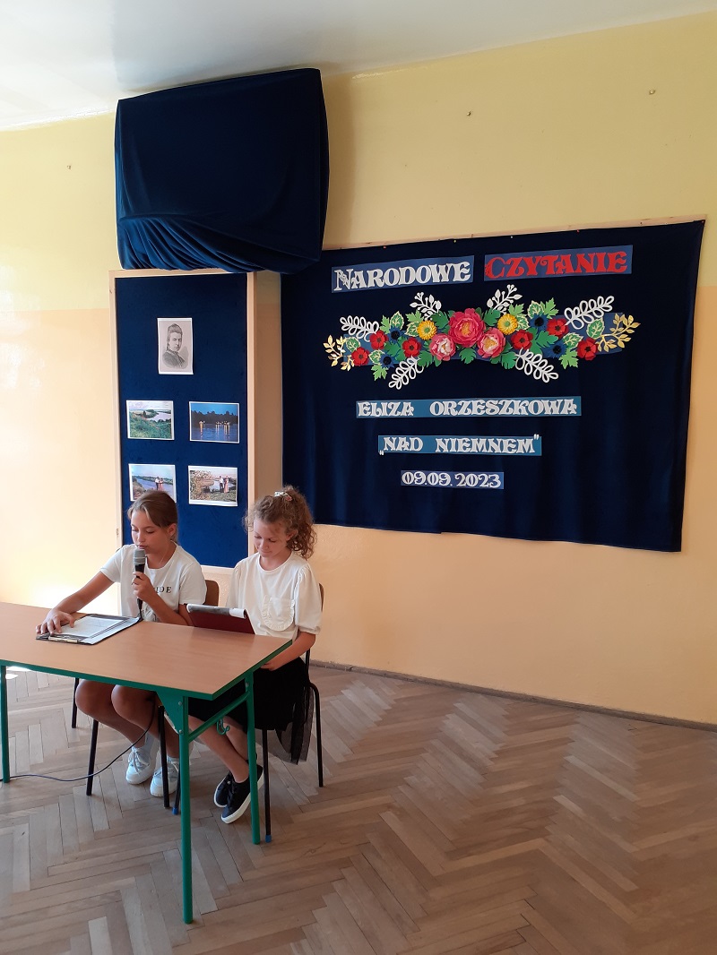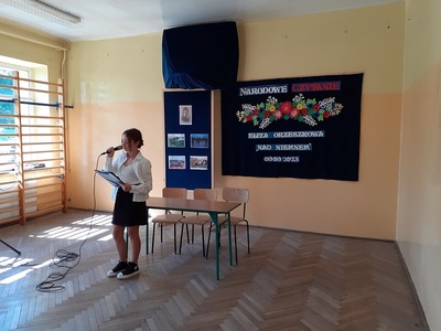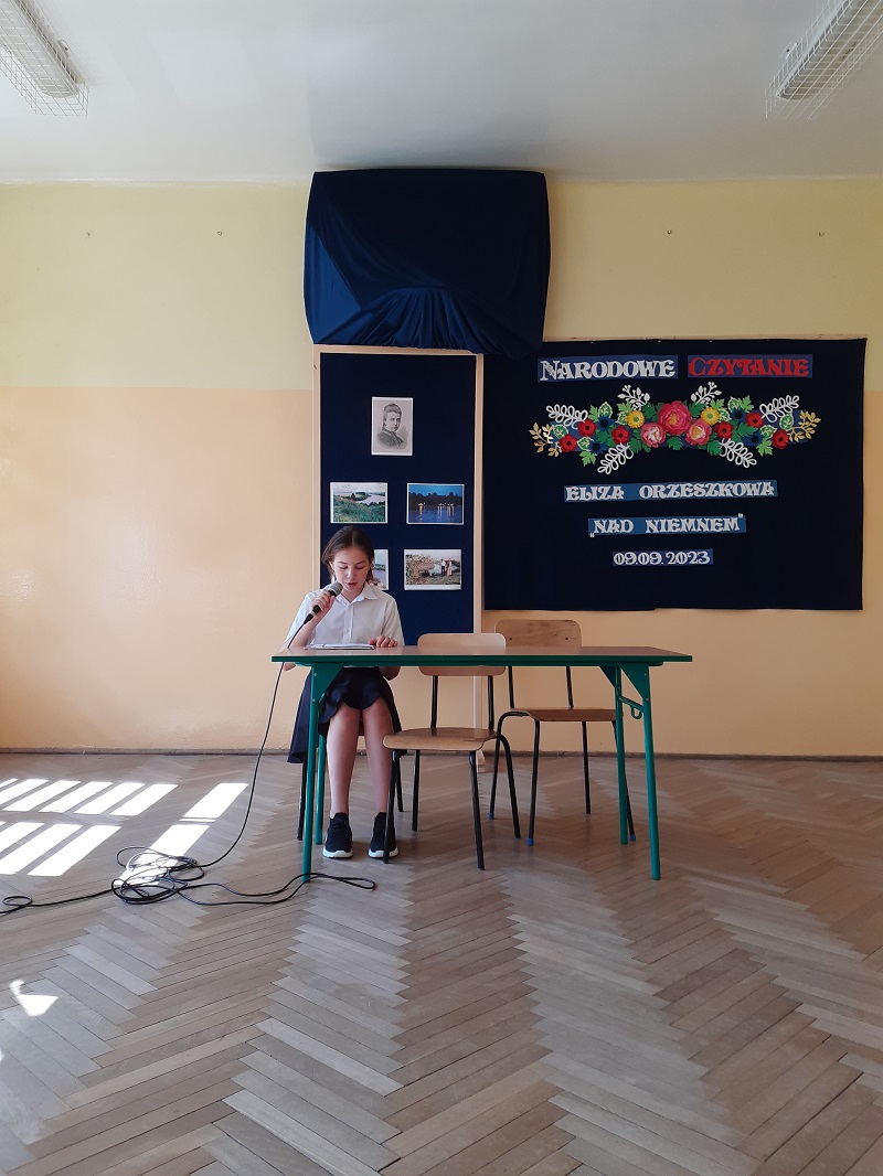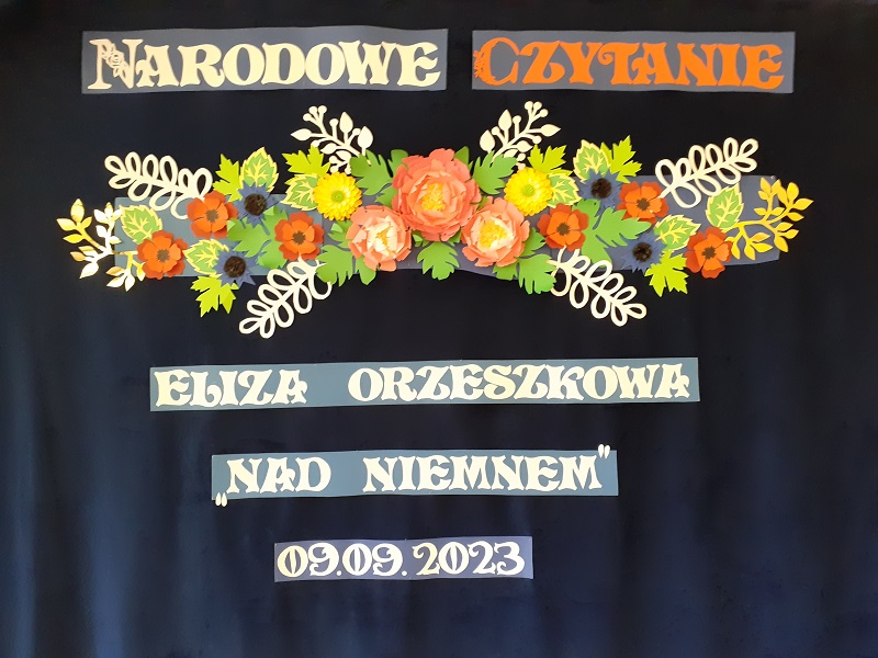 Dnia 11 września 2023 r. uczniowie naszej szkoły wzięli udział w akcji Narodowe Czytanie 2023. Podczas tegorocznej, dwunastej odsłony Narodowego Czytania spotkaliśmy się, aby wspólnie czytać najbardziej znaną powieść Elizy Orzeszkowej pt. „Nad Niemnem”.