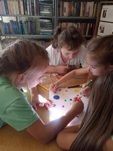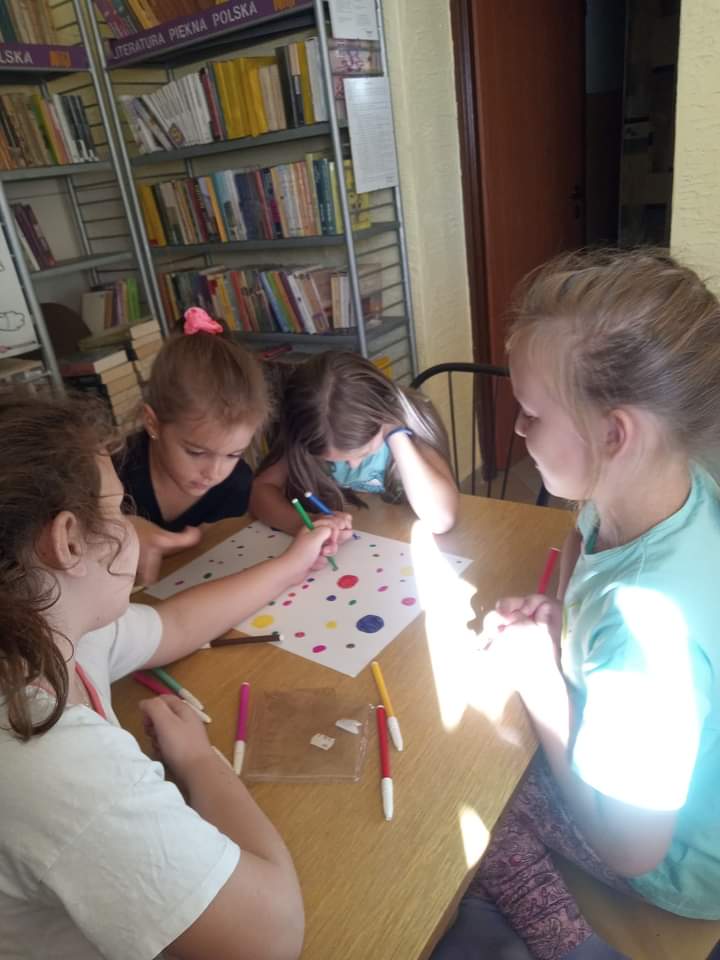 Uczniowie klasy I dzięki uprzejmości pani Urszuli Tkaczyk- bibliotekarki z Biblioteki Publicznej w Dębinie mogli aktywnie włączyć się w obchody International Dot Day. Uczniowie założyli ubrania w kropki, wykonali kropkowane dzieła sztuki, rozwiązywali zagadki, wykonywali różne zadania.  Wszyscy byli bardzo kreatywni.  Historia  Vashti pokazuje, że każdy  ma swój własny talent, który warto dostrzec i rozwijać.