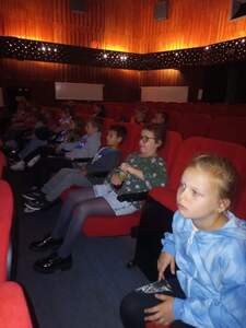 Dnia 26.09.2023 r. uczniowie klas I-III wraz z wychowawczyniami wybrali się do kina "Metalowiec" w Kraśniku na film pt. "O psie, który jeździł koleją". Film opowiada o Zuzi, która poznaje owczarka szwajcarskiego o imieniu Lampo. Jest on bardzo popularny dzięki swym podróżom koleją. Film jest pełen wzruszających momentów oraz ciekawych przygód psa - podróżnika. Zarówno dla najmłodszych, jak i dorosłych jest niezapomnianą lekcją empatii, ukazuje wielką moc przyjaźni.