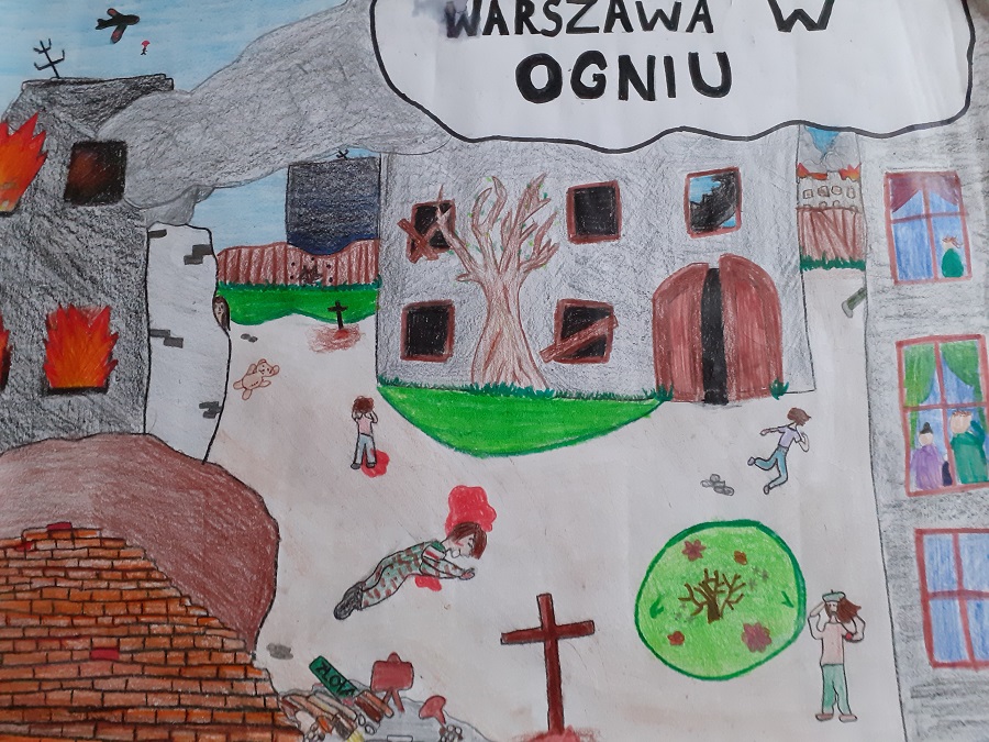 Wykonali w grupach prace plastyczne przedstawiające te obrazy powstania, które najbardziej utkwiły im w pamięci i najmocniej ich poruszyły.