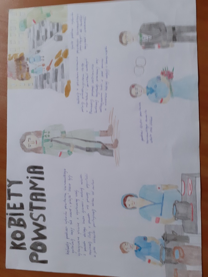 W klasie VIII zajęcia rozpoczęły się od obejrzenia odcinka programu Co za historia przygotowanego przez Arkadiusza Patera, poświęconego Powstaniu Warszawskiemu. Uczniowie dzięki filmowi poznali przyczyny, przebieg i skutki powstania. W oparciu o przedstawiony na zajęciach materiał przygotowali infografikę na temat następujących zagadnień: