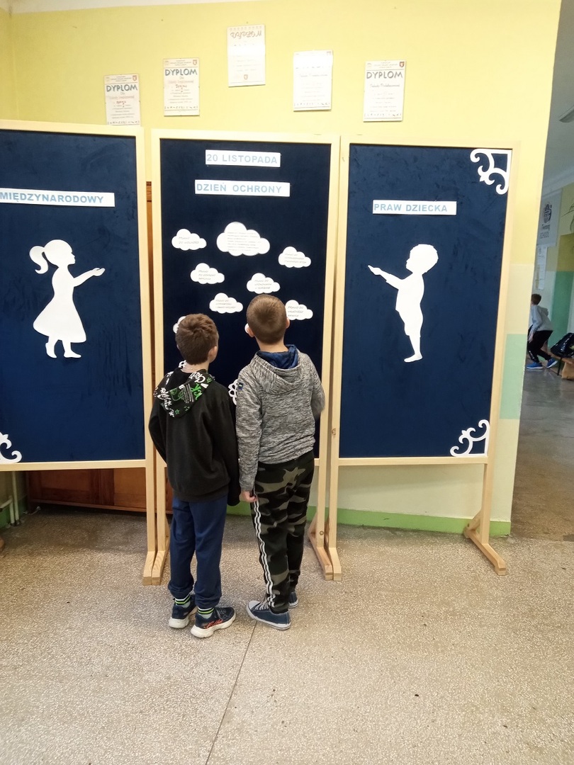 Obchody tego dnia mają być impulsem do podejmowania aktywności w zakresie upowszechniania praw dziecka, zarówno wśród najmłodszych obywateli, jak i dorosłych, dlatego w naszej szkole zostały przygotowane z tej okazji  tablice informacyjne o prawach przysługujących dzieciom.