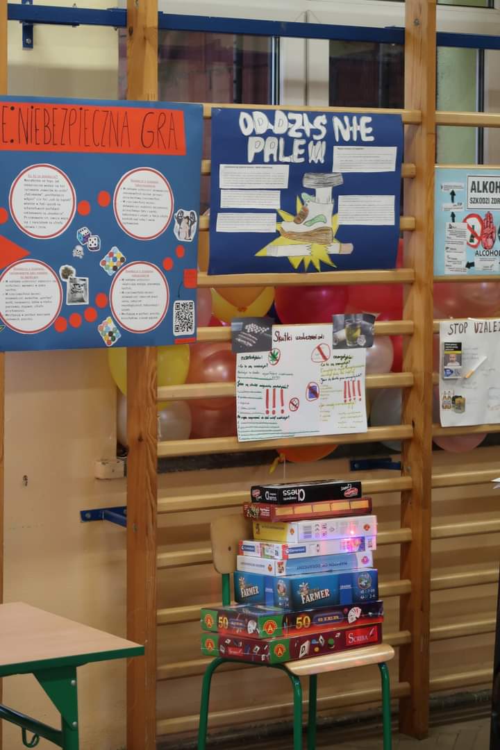 Reprezentacje poszczególnych klas wzięły udział w konkursach przeprowadzonych w dwóch kategoriach wiekowych: klasy I – III oraz klasy IV – VIII. Pytania konkursowe dotyczyły m. in. czynników pozytywnie i negatywnie wpływających na zdrowie, rodzajów uzależnień oraz przyczyn i skutków nałogów. W sali, w której odbywały się zmagania konkursowe, rozwieszone były wykonane przez uczniów plakaty o tematyce profilaktycznej.
