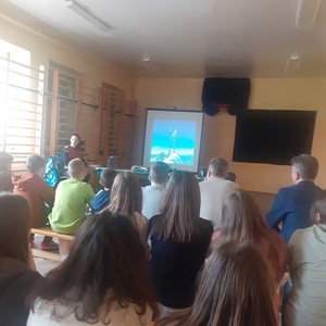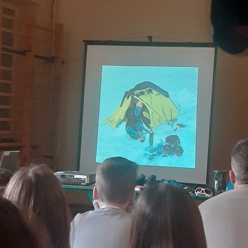 19 lutego 2024 roku w naszej szkole  odbyło się w  spotkanie z alpinistką p. Magdaleną Gąbka. Uczniowie z ciekawością i wielkim zainteresowaniem oglądali zdjęcia i słuchali opowieści o zdobywaniu szczytów górskich, w tym tych najwyższych. Mieliśmy okazję obejrzeć akcesoria niezbędne podczas wyjść  w góry oraz  sprzęt alpinistyczny.  Miejmy nadzieję, że uda nam się spotkać z Panią Magdaleną kolejny raz i  wtedy opowie nam o swojej wyprawie na Mount Everest, która czeka ją w najbliższym czasie. Trzymamy kciuki!