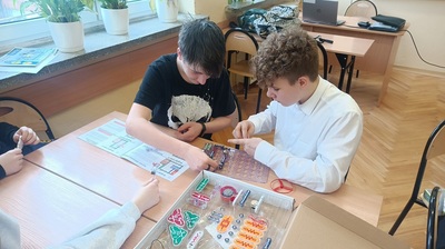 Uczniowie klasy IV, V i VI na lekcjach techniki budowali układy elektryczne i elektroniczne korzystając z pomocy edukacyjnych pozyskanych w ramach projektu Laboratoria Przyszłości.
