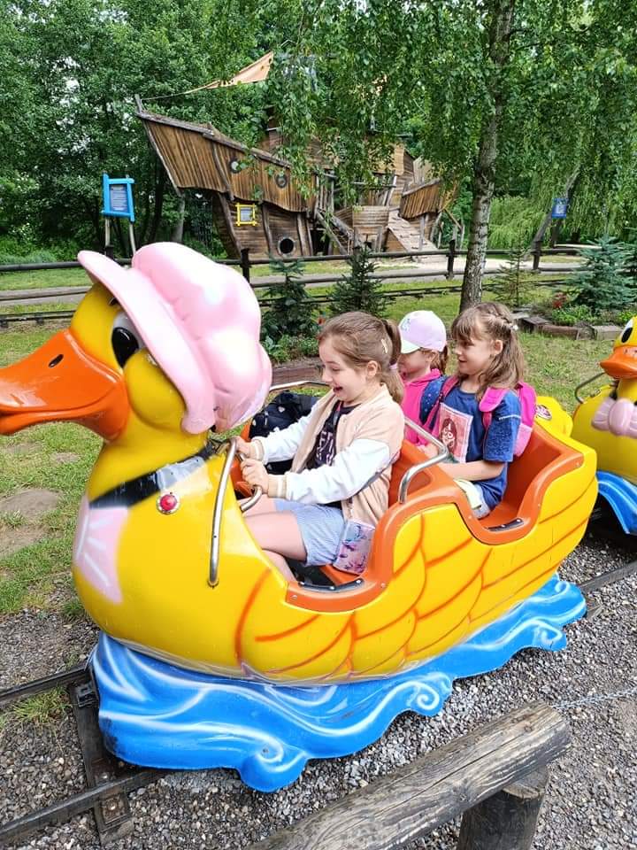 Kolejną atrakcją był Park Zabaw, a w nim karuzele, rollecoastery, trampoliny, basen z kulkami, statek piracki i wiele innych rozrywek. Zrelaksowani odwiedziliśmy Zwierzyniec Dolny, gdzie czekała nas jeszcze jedna gra terenowa.