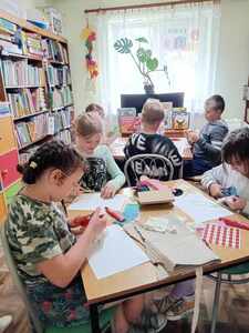 7 czerwca uczniowie klasy III naszej szkoły wzięli udział w warsztatach bibliotecznych w Bibliotece Publicznej w Dębinie pt. "Kto ilustruje moje książki".