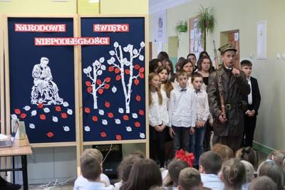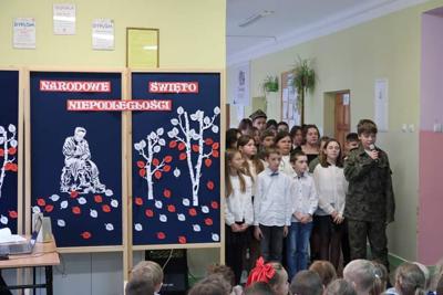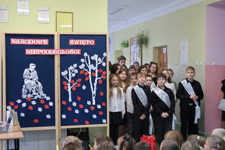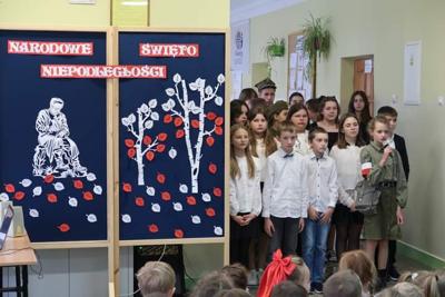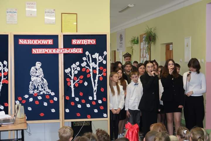 Obchody Narodowego Święta Niepodległości  rozpoczęły się w Szkole Podstawowej im. Królowej Jadwigi 8 listopada 2024 r.. W tym dniu uczniowie klas V- VIII zaprezentowali społeczności szkolnej akademię poświęconą tym wszystkim, którzy na przestrzeni dziejów oddawali życie za wolność naszej Ojczyzny – rycerzom, którzy skrzyżowali  miecze pod Grunwaldem, obrońcom Jasnej Góry, tym, co powstrzymali nawałę turecką, uczestniczyli w powstaniach: kościuszkowskim, listopadowym, styczniowym, tym, którzy przeciwstawiali się germanizacji i umęczeni ginęli w śniegach Sybiru. Ale też tym Polakom, którym zawdzięczamy teraźniejszą wolność - bohaterom II wojny światowej i trudnych lat powojennych.