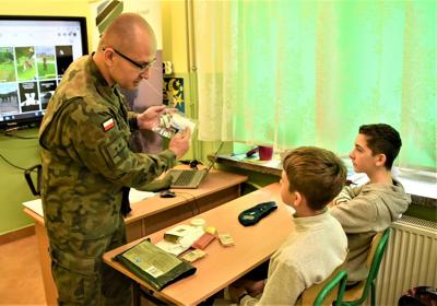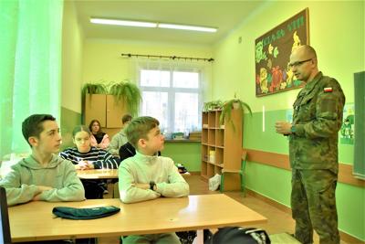 27.11.2024 zajęcia w ramach projektu odbyły się również w naszej szkole. Uczniowie klasy VIII spotkali się z żołnierzami WCR w Lublinie. Mieli okazję wysłuchać prelekcji dotyczącej różnych rodzajów służby wojskowej oraz oferty kształcenia jaką proponują wybrane jednostki kształcenia wojskowego.