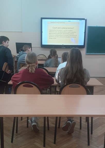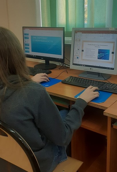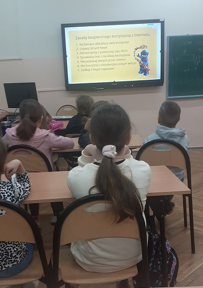 - Na lekcjach informatyki zostały przeprowadzone zajęcia z zakresu: bezpiecznego korzystania z internetu, zagrożeń, cyberprzemocy oraz porad z wykorzystaniem strony sieciaki.pl;