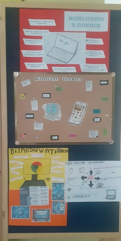 - Uczniowie wykonali: plakaty tematycze oraz prezentacje dotyczące zagadnienia bezpieczeństwa w sieci.