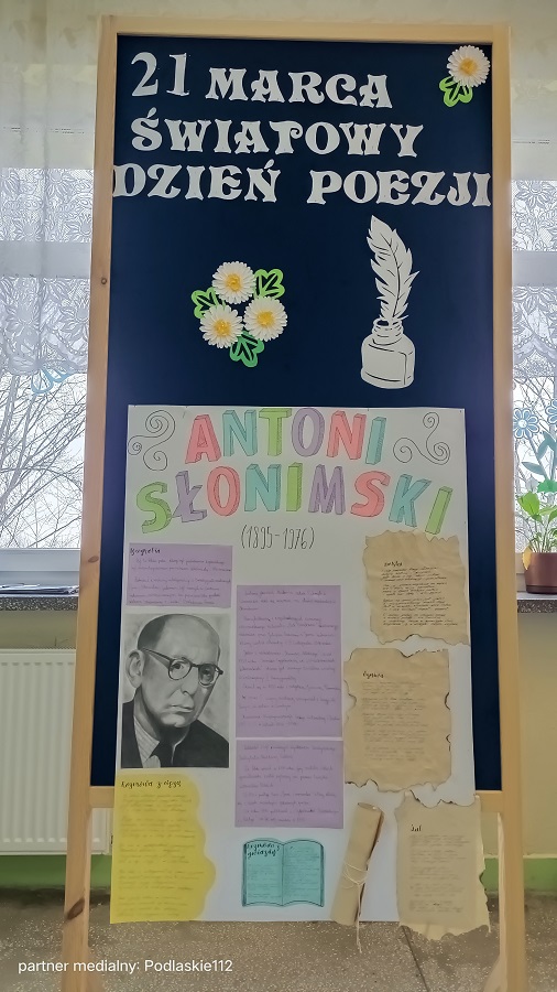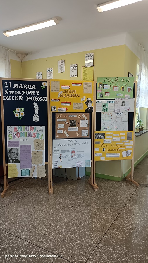 W tym roku w obchody Światowego Dnia Poezji włączyła się również nasza szkoła. Uczniowie klas IV – VIII przygotowali plakaty poświęcone poetom ogłoszonym przez Sejm i Senat Rzeczypospolitej Polskiej Patronami Roku 2025 – Antoniemu Słonimskiemu i Marii Pawlikowskiej – Jasnorzewskiej. Prace uczniów zostały zaprezentowane na szkolnej wystawie.