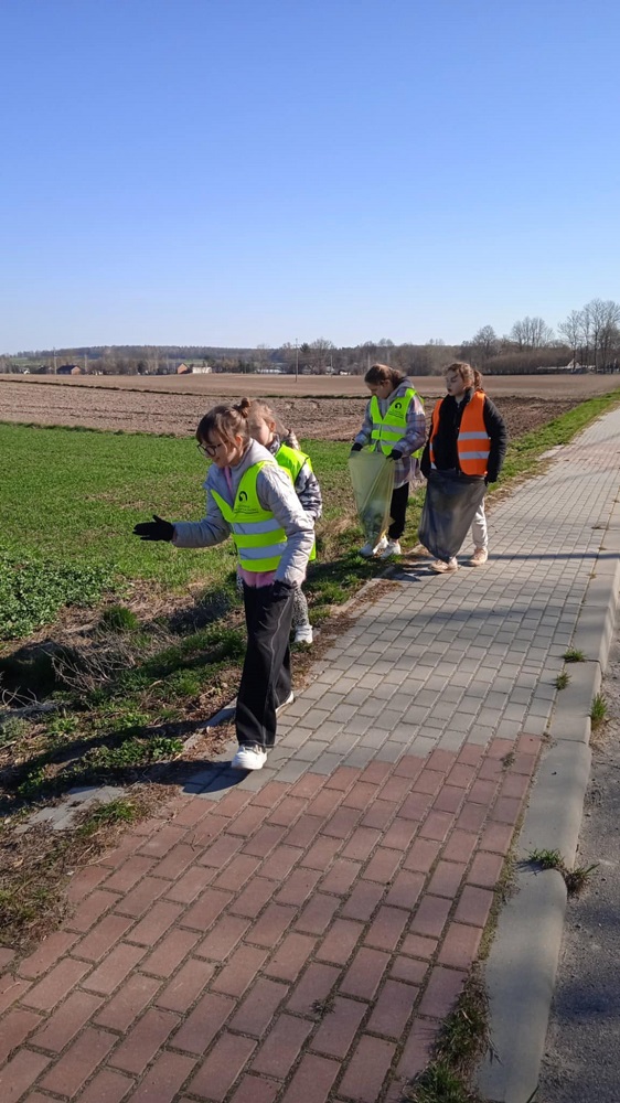 W dniach  3 i 4 kwietnia 2025 roku uczniowie, pod opieką nauczycieli, wyruszyli w teren  zbierać śmieci . Tego typu inicjatywy nie tylko przyczyniają się do poprawy wyglądu naszej gminy, ale również kształtują postawy proekologiczne i uwrażliwiają dzieci na znaczenie dbałości o nasze wspólne otoczenie. Dzięki tym działaniom uczniowie uczą się nie tylko praktycznych umiejętności, ale także wartości związanych z troską o przyszłość naszej planety.